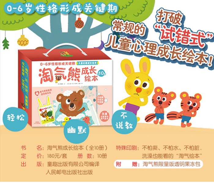 这是一本图画故事书。在淘气熊成长绘本中,主人公是一只刚过两岁生日的小熊仔。爱笑、爱哭、爱捣蛋、好奇心强的小熊其实跟3岁的孩子很相像。作家力图通过小熊的故事给这一年龄段的孩子培养正确的价值观,帮助他们学习体谅和感激、友爱和分享,学习在个人与集体间取舍,和朋友们一起想办法,做最受欢迎的我。