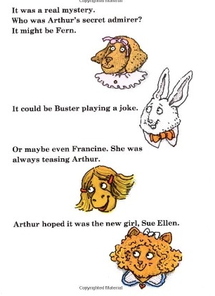 Valentine's Day is just a few days away and Arthur can't figureout who his secret admirer is. It might be Fern, but he hopes it'sSue Ellen. Or is it Buster playing pranks? Can you guess?