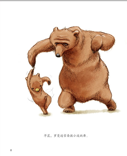 《爸爸的怀抱》讲述:小波是一头总有很多很多 问题的好奇的熊宝宝,她的爸爸罗曼是一位著名的舞 蹈家。爸爸总是给小波讲有关外面世界的神奇故事, 到了晚上,爸爸总用同样的一句提醒来结束他的故事 :“不要对你看不到的事情抱有太多幻想,快乐地呆 在属于你自己的那个角落就行了。” 但是小波可不这么看,他想去广阔的世界寻找属 于自己的那个角落,或者,看看那个角落到底是个什 么样子,于是,小波出发了。