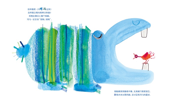 这是一本风格独特的童谣体裁图画书,适合2~6岁儿童阅读。书中以各种各样的可爱动物为主人公,作者运用明快亮丽的色调与简单生动的线条,勾勒出鸭子、小鱼、绵羊、大象、河马等活泼可爱的动物形象,并极具创意地为每种动物配以幽默诙谐、朗朗上口的童谣。对于孩子来说,童谣是优秀的语言启蒙材料,该书中的童谣不仅整齐押韵,节奏感强,便于识记,同时内容上涵盖了丰富的主题,诸如积极乐观的探索精神、锲而不舍的顽强品质、解决问题的应变能力等,为孩子营造轻松有趣阅读氛围的同时,助益于其观察力、表达力、联想力、记忆力等能力的提升,帮助孩子培养乐观阳光的性格与发散性创造思维。