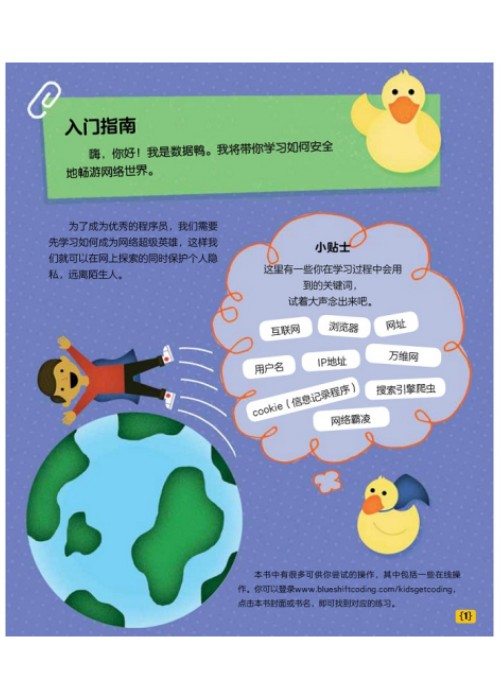 本书属于科普绘本,适读年龄3-6岁。在网络上有许许多多惊奇有趣的东西,但是当你成为了程序员,你就应该知道人们在网络上透漏的资讯的来源与去处,从本书一起学习计算机是如何连结在一起的,搜寻引擎如何运作,这样才能保护使用者的身份与信息。读者们能在电脑上练习、展示自己所学的新技能!