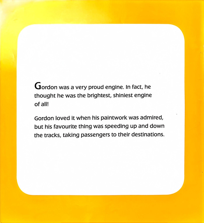 Gordon was a very proud engine. In fact, he thought he was the brightest, shiniest engine of all!