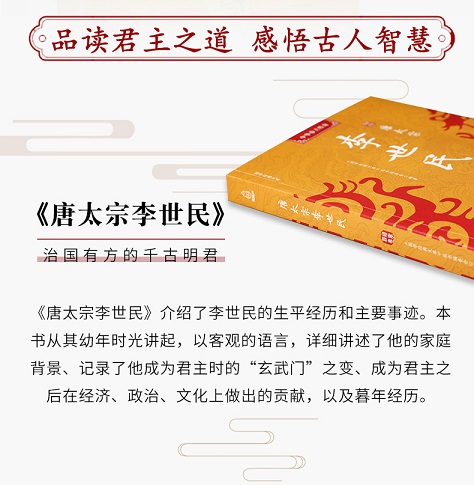 《唐太宗李世民》本书详实、全面讲述唐太宗李世民生平事迹。唐太宗即李世民,唐朝第二位皇帝,他是中国封建社会中杰出的政治家、军事家,史学家公认的封建社会开明帝王之一。他重视农业,减轻农民赋税劳役。“戒奢从简”,节制自己的享受欲望,开创了历史上的“贞观之治”,为唐朝全盛的开元盛世奠定了坚实基础。这本书的编著者以时间为序,查阅了海量资料,讲述了唐太宗从降生人世,到发动玄武门之变,杀兄逼父,登上皇位,一直到去世的一生经历,并以客观的视角点评了他对历史做出的贡献