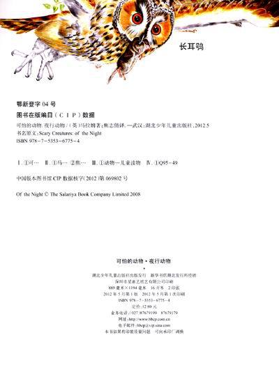 是吸血的蝙蝠?是滑溜溜的蛇?海狮诡异的猫头鹰? 来看看真相到底如何: 为什么有些动物喜欢夜晚出来活动? 它们如何在黑暗中看得清楚? 它们怎样找到自己的实物? 快到《可怕的动物:夜行动物》中寻找答案吧,还有更多解答等你来发现!