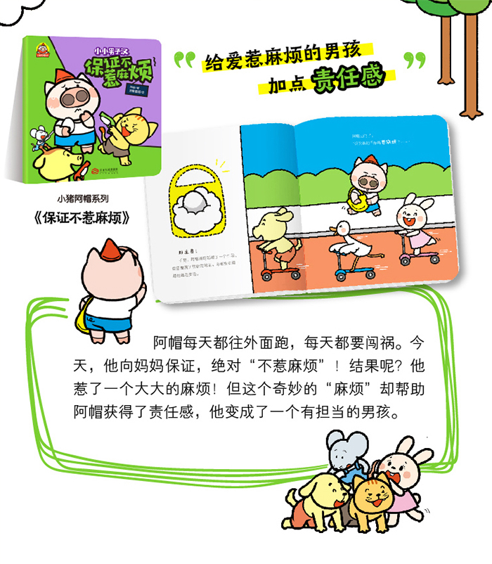 阿帽每天都往外面跑,每天都要闯祸。今天,他向妈妈保证,绝对 “不惹麻烦”!结果呢?他惹了一个大大的麻烦!但这个奇妙的“麻烦”却帮助阿帽获得了责任感,他变成了一个有担当的男孩。