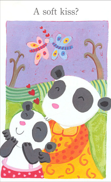 A soft kiss. A sweet kiss. A sticky bamboo treat kiss. There are so many different kinds of kisses, and little panda wants to try them all until he finds the one that is just right for him!