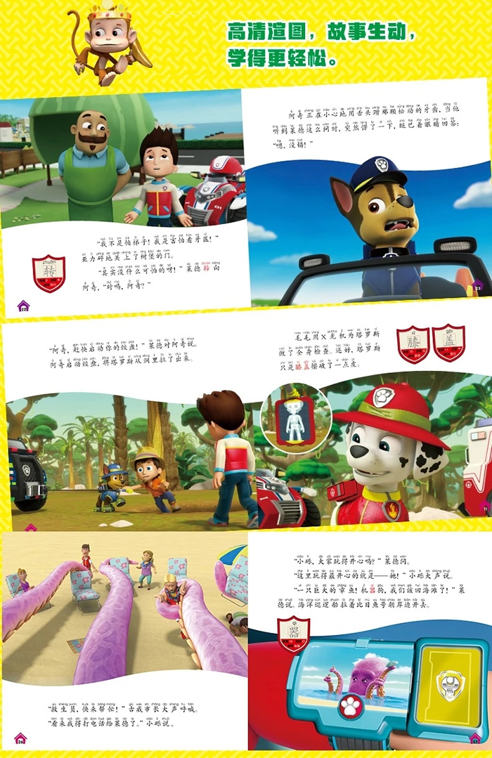 《汪汪队立大功拼音认读故事书》是一套关于儿童安全救援的拼音故事书,共10本。《阿奇要换牙》包括《阿奇要换牙》《冰雪大救援》两个故事。《阿奇要换牙》讲述阿奇的牙齿松动了,他不想去看牙医。就在这时候,汪汪队接到了救援任务:亚力也躲进树堡,不肯看牙医。无奈之下波特先生只得寻求汪汪队的帮助。汪汪队用什么方法能让亚力愿意去看牙医呢? 《冰雪大救援》讲述雪后,汪汪队得知一场危机侵袭冒险湾。古威市长的车被困在雪堆出不去了,快要进站的火车也因为铁轨结冰而无法刹车……他们能化解这次的冰雪危机吗?