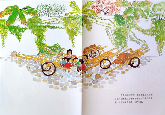 我住在广州西关一栋老宅子里,跟姑妈去荔湾公园晨练,去泮溪酒家喝早茶,去菜市买鲜花,是一天中必不可少的。到了一年中最热闹的春节,买新衣、立桃树、放鞭炮、包年粽、逛花市……所有人怀着满满的幸福,喜气洋洋迎接新一年的到来。这本书通过孩子的视角,表现了南国花市特有的欢乐和地方风情,洋溢着浓郁的喜庆气息。
