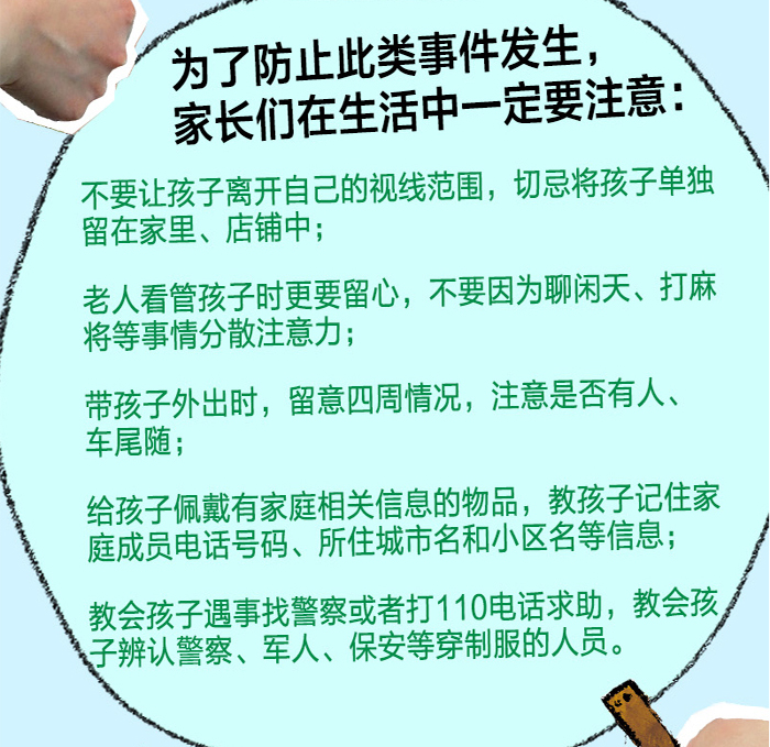 虽然法治社会中拐卖儿童的事件越来越少,但家长还是要时刻保持警惕。因为这样的事一旦发生,就会对整个家庭造成毁灭性的伤害!这本书从人贩子的角度,介绍了多种拐卖儿童的常用手段,其中更加入了与小读者互动的环节,由读者照看小宝宝,直接对抗人贩子。这种独特的叙事手法可以带来更强的参与感和更好的阅读体验,同时还能让家长与孩子更快地树立起防拐意识,学会分辨坏人,从而避免拐卖事件的发生。