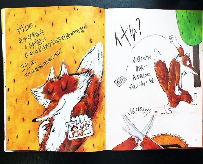 一只坏狐狸在墙上写下了自己准备干的事——偷孩子,他自信一定可以成功。一开始他瞄准了一个,可是那孩子的妈妈寸步不离,于是狐狸只好放弃。突然,他看到了另一位妈妈把自己的宝宝交给了读者照看,狐狸觉得自己的机会来了。他用了好多借口,想骗走孩子,例如:装可怜,用玩具诱惑,扮成孩子的邻居、保姆......他的花招太多啦,阅读这本书的小读者能辨别出狐狸是坏人吗?会上他的当吗?当宝宝的妈妈回来,她又会如何对付这只狐狸呢?