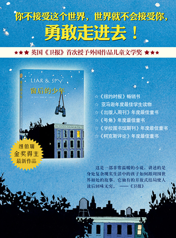 ★这是一部非常温暖的小说,讲述的是身处复杂现实生活中的孩子如何跟周围世界相处的故事,它独有的开放式结局使人读后回味无穷。——《卫报》