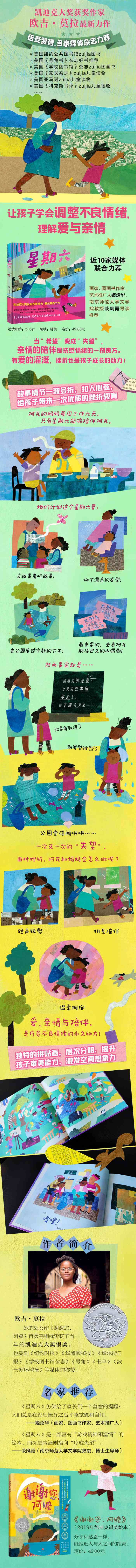 今天将会是特别的一天,今天将会是美妙的一天,今天是星期六! 阿瓦的妈妈每周工作六天,只有星期六能够陪伴阿瓦。阿瓦和妈妈早就计划好了怎样度过这个星期六:先去图书馆的故事角听故事;再去做个漂亮的发型;然后去公园度过一个安静舒适的下午;最后,也是最重要的,一起去看阿瓦期待已久的、只上演一晚的木偶剧。 可是,当阿瓦和妈妈开开心心地出门后,意外却接二连三地发生……这个星期六,阿瓦和妈妈将会怎样度过呢? 这是凯迪克大奖得主欧吉·莫拉的又一精品力作,她用独特别致的拼贴画和朗朗上口的文字,演绎出了一个又特别又美妙的星期六的故事,一个用心陪伴、用爱温暖彼此的亲情的故事。