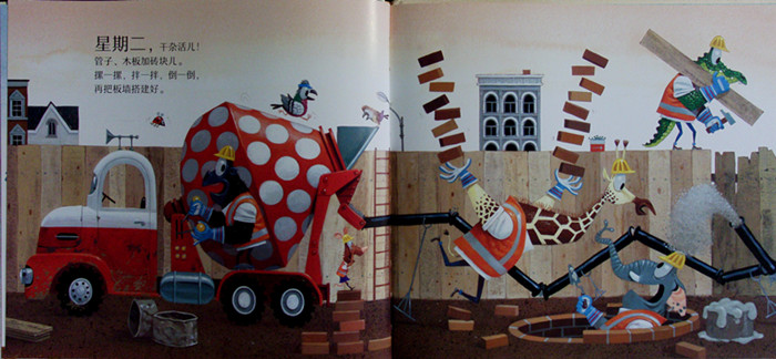 《忙碌的工人,忙碌的一周》——计划与实施为目标制定计划,一步步完成的过程*令人愉悦!小镇的建筑工人们,叮叮当当忙个不停。设计图纸,填平坑地,垒好砖块,刷满油漆……各式各样的建筑车辆,新奇有趣的建筑工具,眼看完工的日子一天天接近,所有的居民都在好奇——这里是用来做什么的? 这是一本充满知识性和趣味性的绘本,讲述工人们用一周的时间修建一座游乐园,语言押韵,让孩子认识工具与车辆、了解建筑的过程,同时在丰富的动词中培养语言能力。