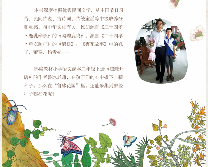 如何在课堂内外更好地进行小学语文学习与童话阅读?读了“课堂种子课外花”系列图书,你或许会得到启发。这套书中不仅有入选教育部统编小学语文课本的《蜘蛛开店》,还有鲁冰创作的许多童话。每本书都附有创作谈,作者对书中的童话进行了逐一阐释解读,你可以从中了解到作者为什么会写那些童话,那些童话在作者脑子里是怎样形成的……