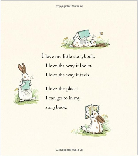 An eager little bunny lies on the grass and opens his book, and within moments, the story he’s reading comes alive in fascinating detail. As the bunny reads on—lazing back against a tree root—Anita Jeram quietly ushers children inside the pages of a fanciful story. Exquisite watercolors capture a classic storybook world of enchanted forests, gentle lions, stomping giants, and sleeping princesses, offering just a glimpse of the any adventures waiting to be discovered through the magic of books.