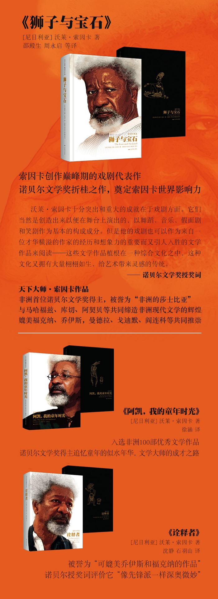 4. 索因卡系列代表作正式集结出版,全面展示他剧作家、小说家、诗人、评论家的文学才华与创作成就。