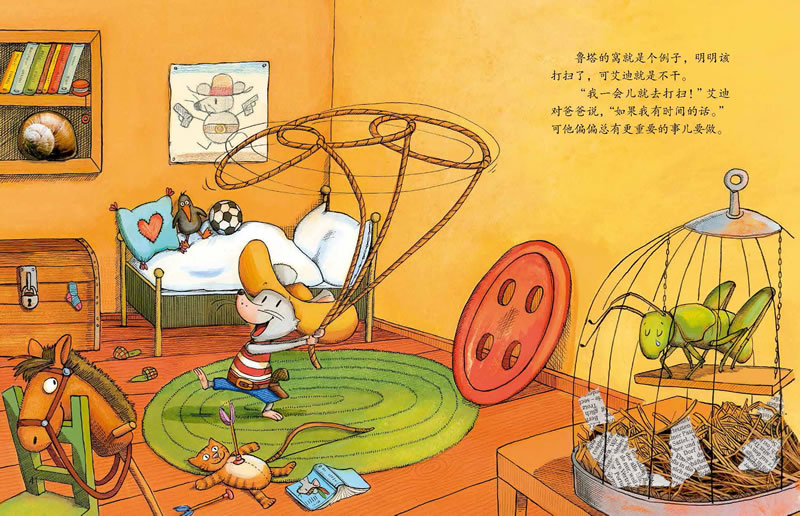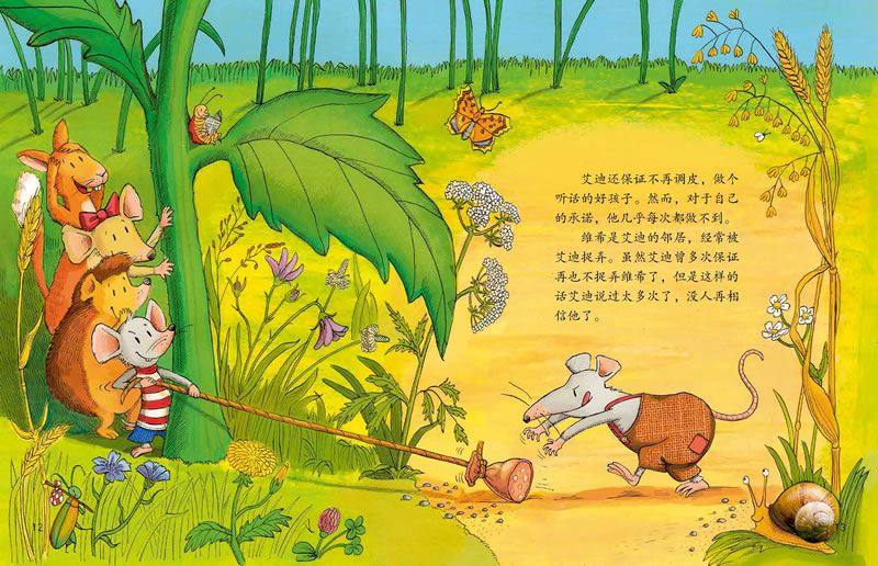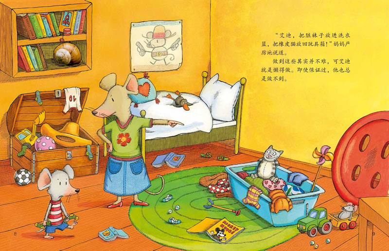《艾迪,说到做到》是一本有关信用的图画书。小老鼠艾迪答应整理自己的房间,答应自己洗耳朵,答应乖乖睡觉,答应做个听话的孩子。可他总是在保证之后又将其抛在脑后,从没兑现过自己的承诺。一天,当他碰到一只大个子猫,他才意识到信守诺言是多么地重要!
