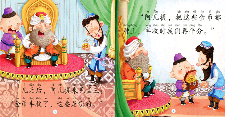 从前,新疆有一个又聪明又机智的人,他叫阿凡提。他总是骑着小毛驴到处走,用自己的智慧对付那些欺压百姓、心术不正的人,他嘲笑投机的商人、惩罚贪婪的财主,为遇到难题的村民们出谋划策,有时候连国王也会很怕他。1980年,阿凡提的故事被搬上大银幕,为广大观众所熟知。如今,阿凡提骑着毛驴、头戴民族花帽、机智风趣、富有正义感的形象早已深入人心,他亦入选“世界民间艺术形象”之列。本书精选阿凡提巧惩贪心国王,戏弄自大法官,智斗吝啬巴依等几个生动活泼的故事,并配绘了精美可爱的插图,让宝宝在轻松的阅读中学习阿凡提的聪明机智,培养勤动脑、爱思考的好习惯。