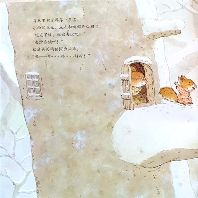 在美丽的大森林里,住着松鼠一家:松鼠爸爸、松鼠妈妈和三只好奇的小松鼠点点、豆豆和嘟嘟。三只小松鼠在大森林里攀爬、跳跃、飞奔。初春,他们顺着融化的雪水漂流;盛夏,他们在废弃的树洞里躲避雷阵雨;深秋,他们爬上树梢去看红彤彤的落日;隆冬,他们兴冲冲地走出家门去滑雪橇……