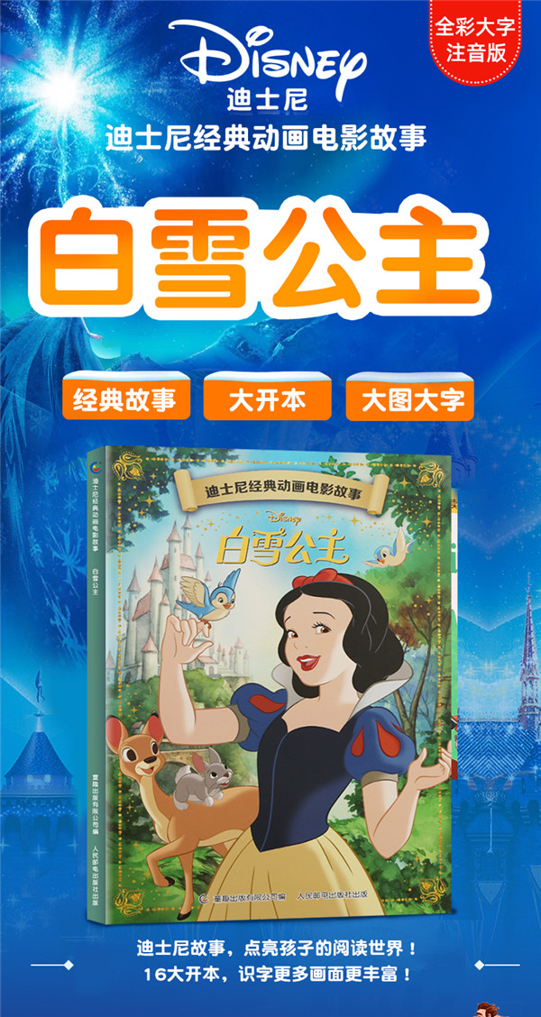 这是一本图画故事书,加注拼音。讲述了善良的白雪公主因为美丽的外貌而遭到继母王后的忌妒。王后命令猎人杀死白雪公主,猎人不忍心下手,白雪公主侥幸逃脱,躲进了森林中的七个小矮人的小木屋,并和他们成了朋友。得知消息的王后伪装成老太婆的样子来到小木屋,哄骗白雪公主吃下了有毒的苹果。七个小矮人未能阻止悲剧的发生,直到有一天,王子出现了……王子是能否唤醒白雪公主呢?