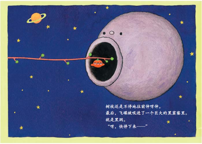 公园里的树枝结出一颗 橙色的果子,果子越长越大 ,长成缆车。树枝伸呀伸, 缆车穿过树林,伸到太空… … 本书通过无厘头的想象 力和幽默感,让孩子学会不 惧困难,勇于发现、勇于探 索,树根与大地相连,无论 伸到多远都让人感到安心, 这也是现实与非现实的过度 。而延伸的原动力,就是无 穷的想象力。