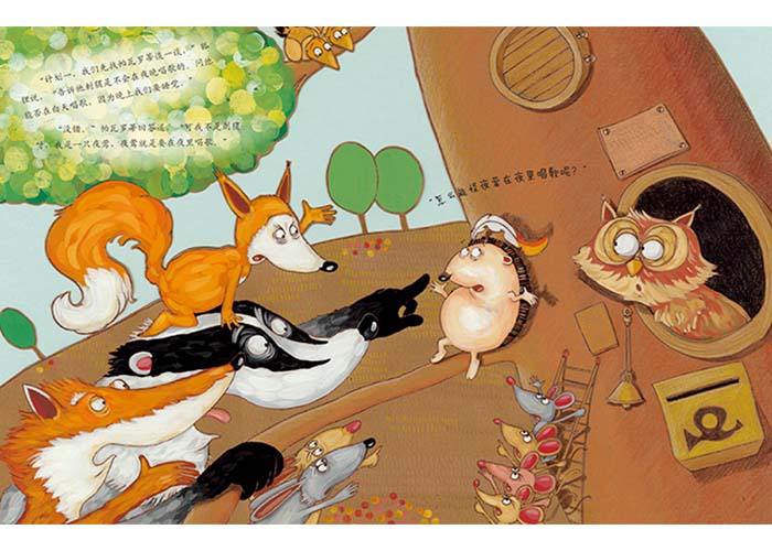 《帕瓦罗蒂,你真吵》这本绘本故事讲述的是一只名为帕瓦罗蒂总爱深夜高歌的刺猬和他的邻居狐狸、松鼠、兔子、獾和老鼠之间的故事。大家前后发动了五次集体“讨伐”帕瓦罗蒂的“卫眠战争”,屡败屡战,终于使帕瓦罗蒂意识到自己的“扰民行为”,修正了这种行为。