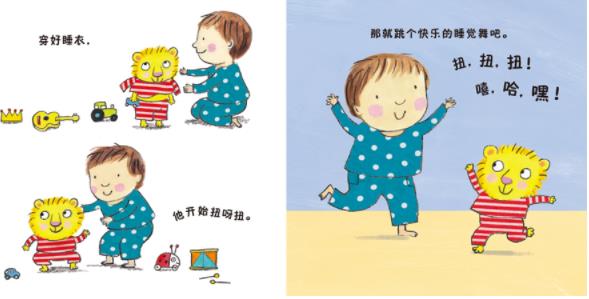 很高兴遇到这样一套书,充分考虑了0-3岁孩子的认知能力和情感需要。它色彩鲜艳,线条简单而细节生动,符合幼小孩子的欣赏习惯。它运用简单的词语和句子,特别是生动的拟声词,充分调动孩子的阅读兴趣。它紧贴孩子的日常生活,吃饭、睡觉、洗澡、刷牙,这些都是幼小孩子必须掌握的生活技能。它不是一板一眼的说教,而是充分考虑了小动物(很容易看出,那些表情和动作都来自孩子)的心情,引导它们一步步培养好习惯。孩子们看到这样的书,先是“感同身受”,与书中的小动物有了充分的情感交流,继而“以身作则”,放下现实中的紧张感,带领小动物一起,好好刷牙,好好吃饭,不怕洗澡,按时睡觉。