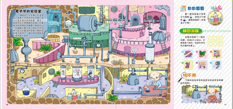 迷宫是一种锻炼孩子逻辑思维能力、培养孩子专注力的游戏形式。要想走出大迷宫,孩子们需要先观察迷宫的整体,再观察局部的通道,通过分析迷宫的结构找到正确的出口。孩子通过“错误-改正”的迷宫游戏,会慢慢建立质疑、思考、理解的思维方式。在这个思考过程中,孩子的洞察力和动脑能力都会得到极强的锻炼与提升。《儿童视觉挑战书·迷宫大冒险》是一套让孩子的观察力、思考力和判断力迅速提升的迷宫书。图书内含40个全景跨页迷宫场景,围绕人类文明、自然奇观,还有孩子们喜欢的侏罗纪恐龙、开心乐园等多个主题。新颖的迷宫构图,丰富的画面色彩,给孩子带来强烈而震撼的视觉刺激,充分激发孩子的好奇心和求知欲,锻炼了他们的预判能力和手眼协调能力。除了有刺激好玩的“迷宫大冒险”,还有趣味横生的“眼力大挑战”“极速大搜索”等游戏。有的游戏可以让孩子们快速领悟到游戏的规则和要领,并且很容易体会到一种成就感;有的游戏需要孩子集中注意力,比较有挑战性,让孩子在不知不觉中培养观察力,提高专注度,拓展想象力,增强自信心。