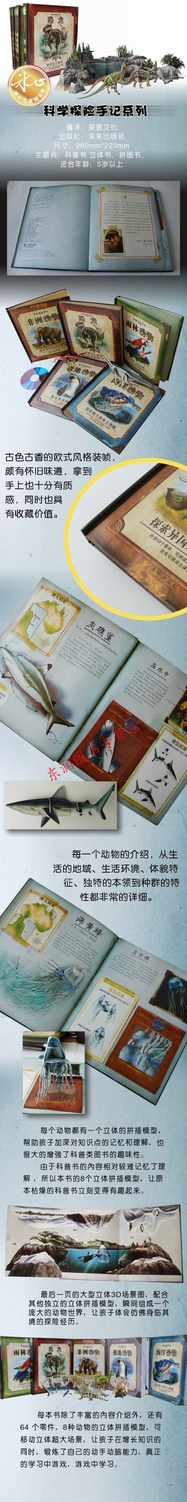 为了把这些我穿越半个地球看到的大堡礁的野生动物们带到海洋馆的参观者面前,我一直记录着观察笔记,并且我还制作了8种我所见到的迷人动物的立体模型。就在这本书里,你可以组装出这些模型,想象着你和我以及我的考察团队,一起在澳大利亚大堡礁蔚蓝的深海里遨游!