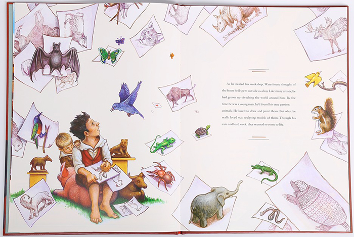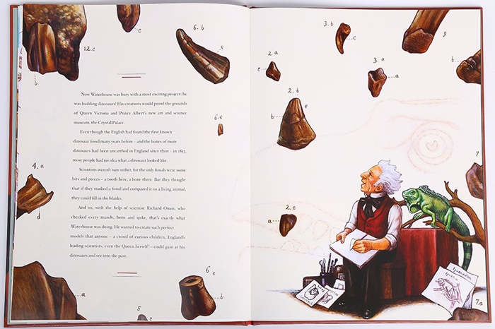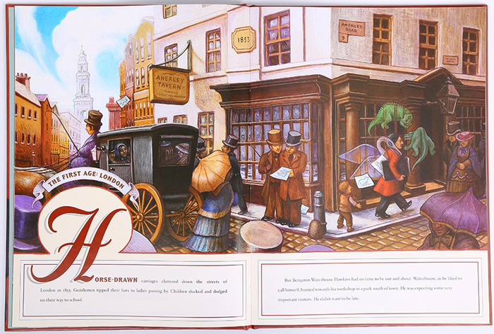 一个叫做Benjamin Waterhouse Hawkins的英国艺术家从小习画,尤其喜欢雕刻动物。长大后,他希望能创造出完美的恐龙模型,让所有人——好奇儿童、英国权威科学家、甚至女王本人!——都能凝神注视、并望见过去的恐龙模型。
