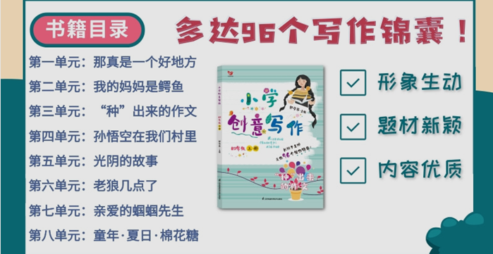 长辫子老师领衔主编,紧扣单元习作主题, 6个年级,12册,96个单元,96个写作锦囊! 它们是提升写作成绩的法宝,更是建立在儿童的精神世界、话语方式和生长需要基础上的创意写作世界。