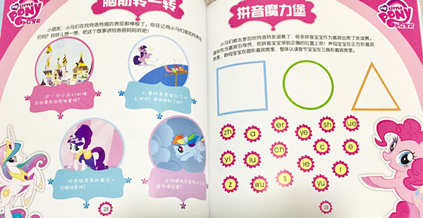拼音和生字学起来很枯燥,一般的小孩子很难带有兴趣地学下去。但是大部分的孩子喜欢读故事,喜欢看美丽的图片,所以该书采用风靡欧美的女孩品牌小马宝莉的精美形象和精彩故事做依托,左页是体现故事情节的精美大图,右页文字中穿插辅助阅读的小图,并为全文加注拼音。每个故事后面还精心策划了丰富多彩的语言活动,鼓励孩子回忆故事情节,提高拼音运用能力,掌握生字,丰富词汇量,全面提高孩子语言表达能力,使孩子语言学习的过程更有趣,更轻松。