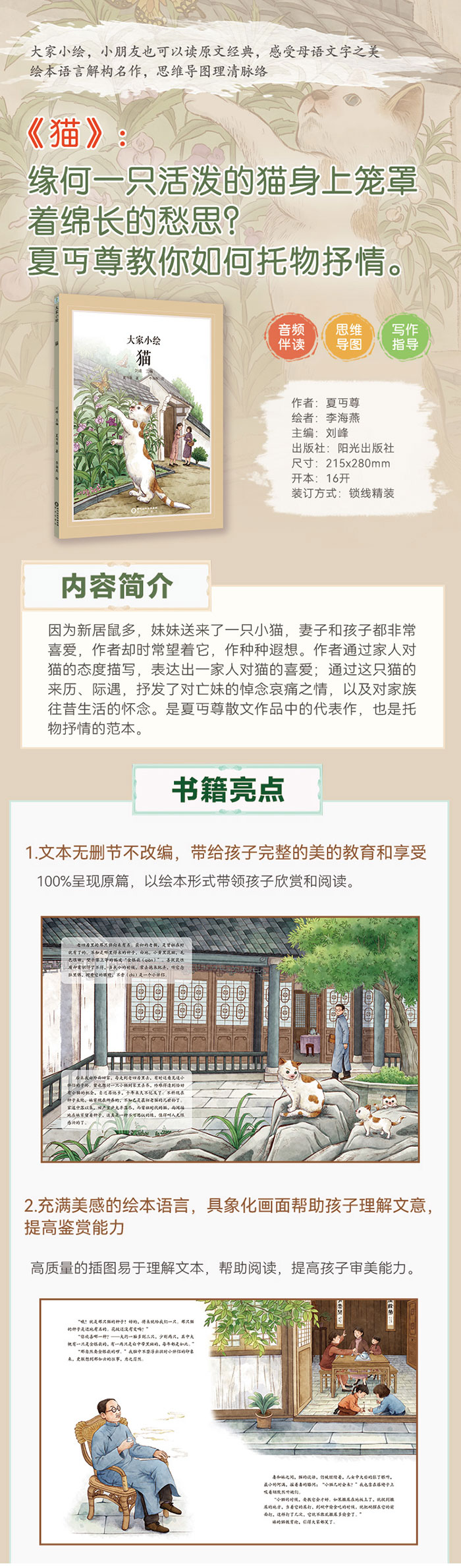 教育家、文学家夏丏尊托物言情范本,于淡淡哀愁中展现对亲人的思念。 阅读经典,提高鉴赏美的能力,培养对爱的感知力。 笔触细腻,灵活生动,将文本视觉化,展现白马湖平屋风光。