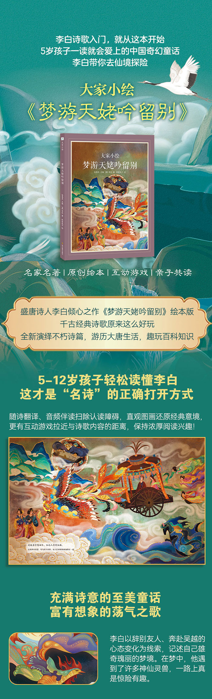 《梦游天姥吟留别》是李白的代表作,以奔赴吴越为线索,记述自己梦游天姥仙境的故事,抒发诗人的壮阔胸襟。全诗想象之奇特绚烂,气势之旷达洒脱,令后人叹服。