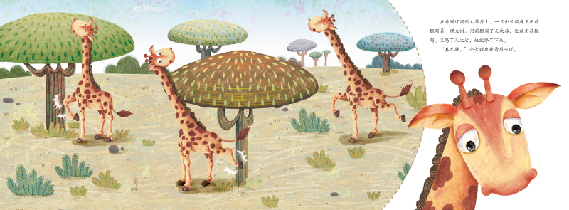 本书的主题是让孩子明白坚持不懈的意义。故事中的长颈鹿喜欢玩,可是妈妈总是让它呆在家里练习踢腿,因为只有练好踢腿的功夫,才能够对付狮子。有一天,长颈鹿实在忍受不了了,它离家出走了。长颈鹿遇见了羚羊和斑马,它们都很勤劳地练习生存技能。因为缺乏练习,小长颈鹿差点被狮子抓住了,幸好妈妈救了它。它终于明白,坚持练习的重要性。