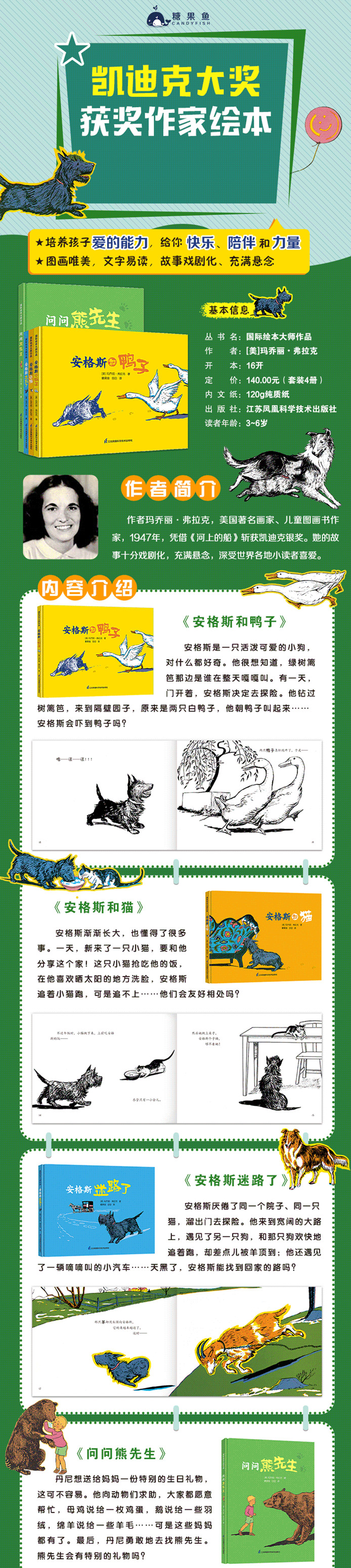 ★ 编辑推荐 玛乔丽·弗拉克的故事很有图画书的感觉,用优美的文字和图画巧妙地戏剧化,充满悬念,深受世界各地小读者喜爱。 ★ 内容简介 丹尼想送给妈妈一份特别的生日礼物,这可不容易。他向动物们求助,大家都愿意帮忙,母鸡说给一枚鸡蛋,鹅说给一些羽绒,绵羊说给一些羊毛……可是这些妈妈都有了。最后,丹尼勇敢地去找熊先生。熊先生会有特别的礼物吗?