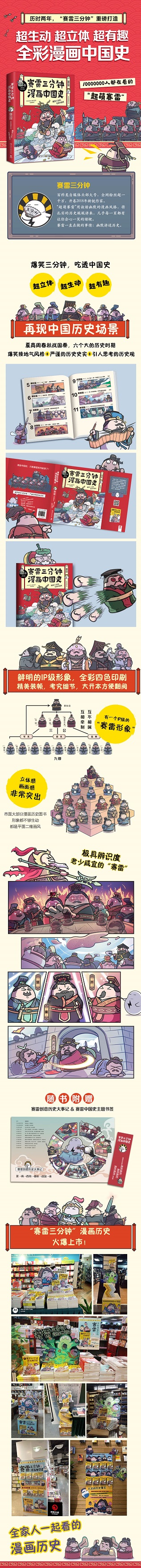 赛雷三分钟漫画解读中国史,风趣幽默同时又有扎实的历史史实。同时它的四色漫画风格,以及极具辨识度的人物形象,会让每个看这本书的人都能走进中国史,并且会看得非常欢乐且放松。