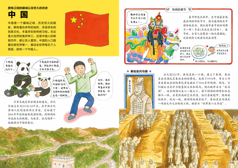 ★全书均从孩子的视角来介绍自己国家的建筑、饮食、文化、特产等方面的知识,以严谨独立的板块来介绍这个国家的面积、人口、地理、气候、历史、经济等方面的知识,知识版块清晰,易于了解。手绘插图生动活泼,带给孩子轻松的阅读体验。