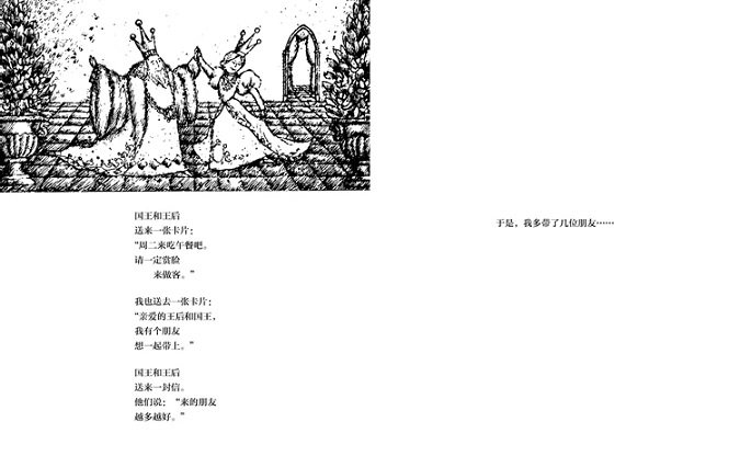 当国王和王后邀请你去喝茶时,还有比问一下“我能带个朋友吗”更自然的回答吗?当然啦,这就是我们这部作品里面的主人公,勇敢的小男孩的回答。不只是喝茶,还有早餐、午餐、晚餐、苹果派、万圣节前夜的聚会……一周六天都得到了邀请。国王非常有礼貌,“这里我们朋友的任何朋友。”他说。于是长颈鹿、狮子、河马、猴子……都来了。虽然不是所有人都表现得很好,但我们必须假定,每个被带来的朋友都得到了所有人的喜欢,不然,国王和王后怎么会答应第七天接受邀请,和那些朋友待在动物园联欢呢?这部经典绘本里展现出的幽默以及愉快的家庭生活的影子将给孩子和家长们带来许许多多的快乐。