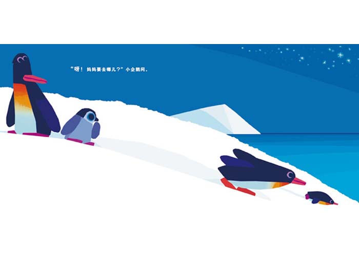天快黑了,海水冰冷,可企鹅妈妈却要出门去找晚饭。小企鹅和爸爸紧张地看着妈妈。企鹅妈妈游泳抓鱼,高高跃起,爬上滑溜溜的斜坡……克服了一个个障碍,非常厉害。 “妈妈是不是马上就回来了?”小企鹅问。 “对,妈妈马上就回来了。”企鹅爸爸说。 只剩下后一段路了,企鹅妈妈得悄悄绕过正在睡觉的海豹。 糟糕!她摔倒了! 企鹅妈妈能顺利带晚饭回家吗?
