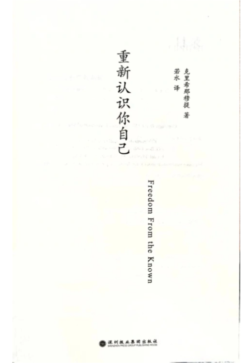 《重新认识你》是20世纪卓越的灵性导师克里希那穆提珍贵的教诲。身为人可贵的,莫过于拥有自由意识。但人经常受限于内在的个性或外在的环境、传统及权威等,而迷失了自己。克里希那穆提在《重新认识你》中,彻底讨论如何从内在及外在的所有束缚中解脱,为自己及生活带来彻底的革新。 多少世纪以来,我们被我们的老师、尊长、书本和圣人用汤匙喂大。我们总是说:“请告诉我,那高原、深山及大地的背后是什么?”我们总是活在别人口中的世界,活得既肤浅又空虚,因此我们充其量只是“二手货”的人。你自己,这个身为人的你究竟是什么?没有任何人或任何东西可以为你解答这个问题,因此你必须先认识自己。认识自己便是智慧的开端。