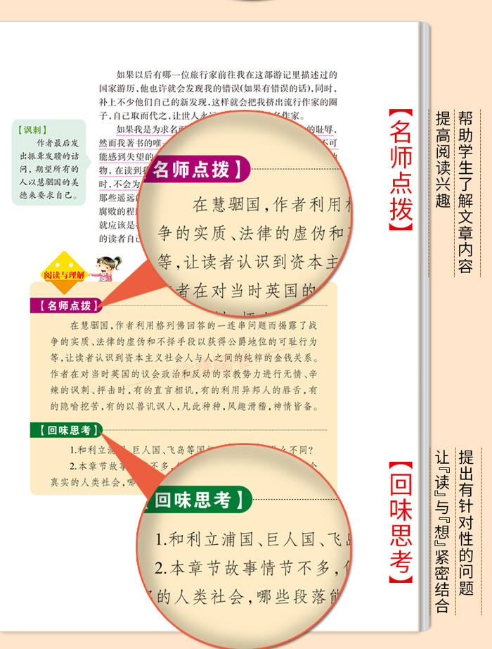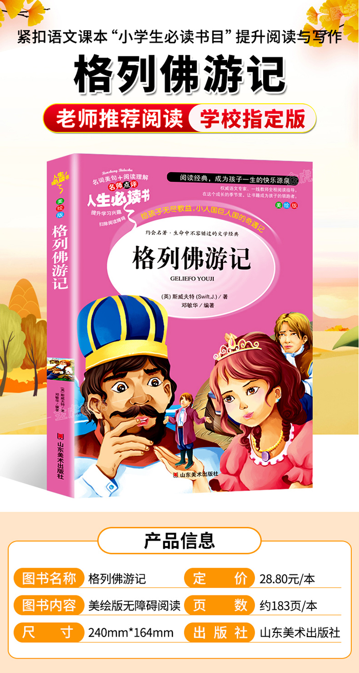 名著阅读,扫除阅读中的障碍,名词美句+阅读理解。优选优编,注重同步知识要点,立足,名师导读。知识宝库,扩大知识储备,**秀的课外读本。斯威夫特所著《格列佛游记(美绘版)》用精彩的点评+美绘插图,将经典的魅力重现在你眼前。