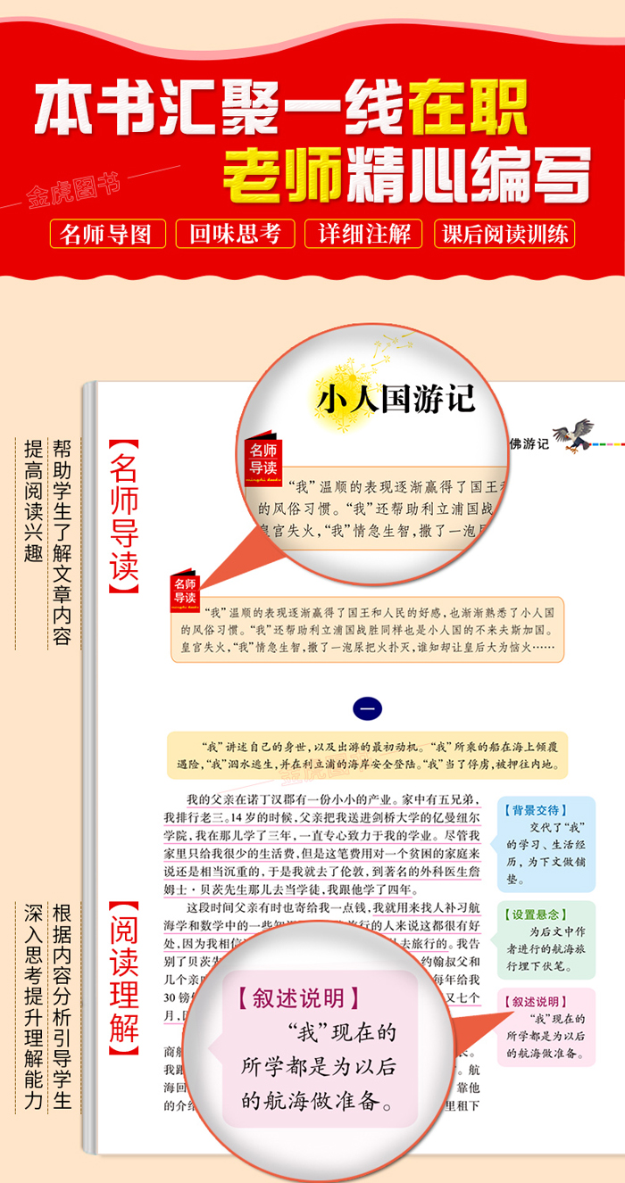 无障碍阅读,名师详细的注释与精评会让名著回归它人生成长导师的根本功能!重难点字词注释,帮助学生理解与学习;详尽又通俗的译文,引导学生快速掌握文章内容;提升学习兴趣,享受快乐阅读的时光.