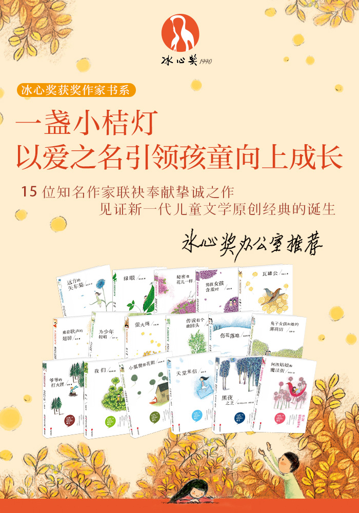 2.《冰心奖获奖作家书系》是献给孩子们**的礼物,也是对冰心老人**的纪念。书系遴选15位活跃于创作一线的知名作家17部高品质儿童文学原创作品,展现当代中国儿童文学的异彩纷呈,传承冰心老人“爱”的精神,播撒真善美的种子,让孩子们享受儿童文学的空灵、纯美、大气和天马行空的想象,使他们的世界更加绚丽多彩,陪伴他们走过成长岁月。