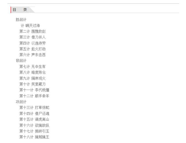 本书整理了历史上广为流传的三十六个计策,以故事的形式介绍在各种环境下克敌或避敌制胜的谋略。