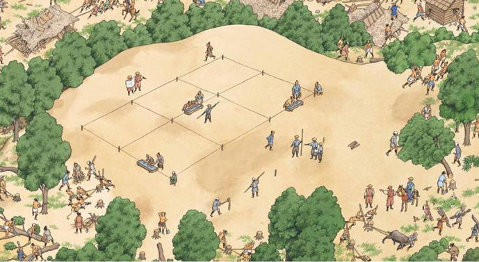 ☆注重细节描绘,从孩子平时看不到又很想看到的的角度描绘古城堡的建造。包括圈绳定界,土地测量等。
