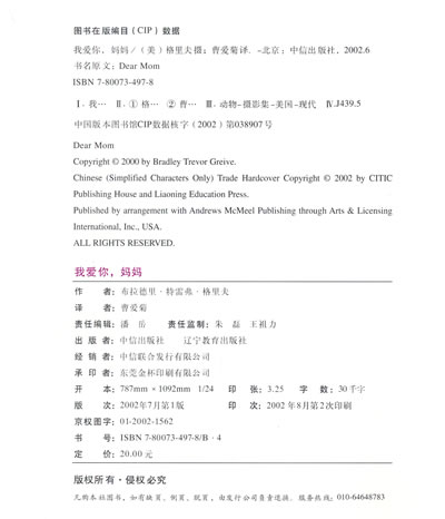 这本书很感人发表于2009-10-16 22:11:17 这是一本中英文对照版的图画书。能得到免费赠送的书我是非常高兴的喜欢的,我相信大家也一定非常喜欢