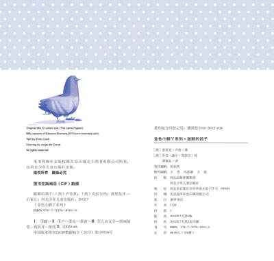儿童文学作家恩里克?卢奇带来的这个温馨感人的故事,不仅让孩子看到了人与动物之间的那份和谐与信任,更使孩子学会分享、懂得关爱他人。全书绘图极具亲和力,插画师细腻的笔触将鸽子的伤心与苦恼、卡拉和保罗的善良与热情展露无遗。读完故事,快速将书从第一页翻到最后一页,你会发现一只鸽子在张开翅膀欢乐地奔跑着,创意十足的设计带给小朋友的是看“动画片”般的享受!