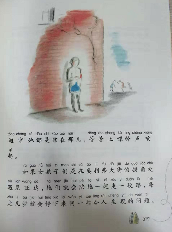 她的眉头微微皱起。首先,她不喜欢上学迟到;其次,她一直在想着旺达。虽然旺达的课桌空着,可不知怎的,那课桌却好像是她每次望向教室的那个方向时能够看到的唯一东西。