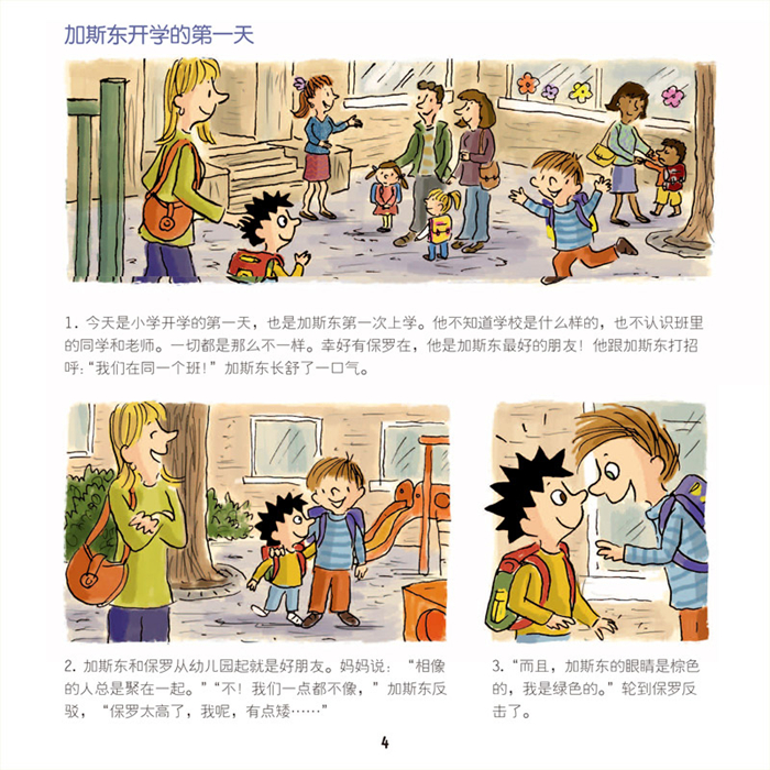 这些问题并非一时兴起的胡思乱想,而是在加斯东每天的生活中出现的一个个具体的现象和事件,因为孩子的听、闻、嗅、触等所有感官都与外部的世界产生对应。如果你的孩子正处在3—7岁的年龄段里,细心的家长不妨回想一下,孩子是不是也有人际交往与处世哲学的困惑,他也会像个小大人一样和我们一起交谈和讨论这些有点琐碎但对他们的心情和成长至关重要的事情呢?这种交谈是比识字数数听故事更为重要,因为这种讨论在潜移默化中激发着孩子主动探究的本能,塑造着孩子独立思考的精神气质,也在密切着你与孩子深层次的情感联系。在这本书中,加斯东和妹妹丝朵在日常生活中,有兄妹彼此亲密的陪伴,也有两个人偶尔的不愉快,在处理两个孩子之间的问题时,书中的爸爸妈妈做出了智慧的沟通。总之,我们想告诉孩子关于生死、幸福、公平、正义、善恶、好坏、美丑、爱与被爱等等这些也许没有终极答案的哲学命题,都融化在了小加斯东的平凡生活中,以对答的形式传达给了阅读这部书的孩子和所有爸爸妈妈们。当然,我们更希望通过这部书,让家长习惯和孩子平等相处的姿态,认识到孩子不是我们身体与眼界的缩小版,我们也不是孩子的未来成长的模板,他们完全可以具备独立的见解、乐观的态度、科学的精神来应对未来生活中的一切。